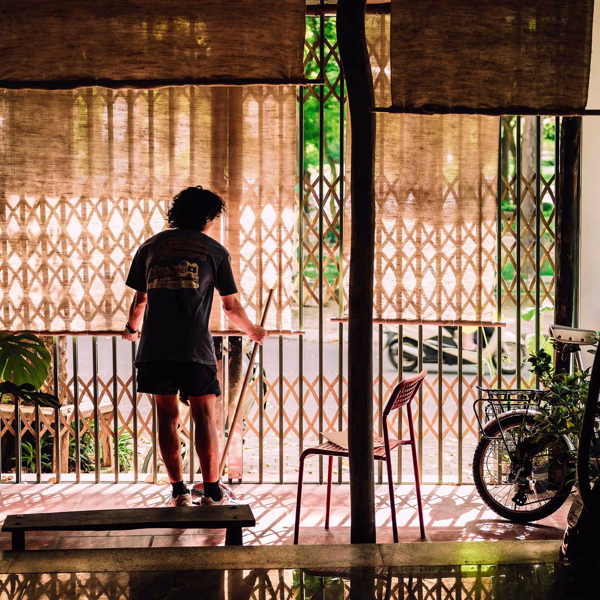 Cái tĩnh trong cái động vì mình nghĩ nhiều khi mình hoạt động rất nhiều nhưng mình vẫn rất tĩnh trong cái suy nghĩ ấy. Một phần nào đấy trong cái suy nghĩ mình vẫn dành cho nó. Ngoài những quãng thời gian đó ra thì nó luôn luôn là những cái lát cắt, một trong những cái lát cắt nó cũng là một cái tĩnh, một khoảnh khắc nào đấy nó sẽ đọng lại, chứ mình không đồng ý tĩnh là lúc nào mình cũng phải ngồi yên.