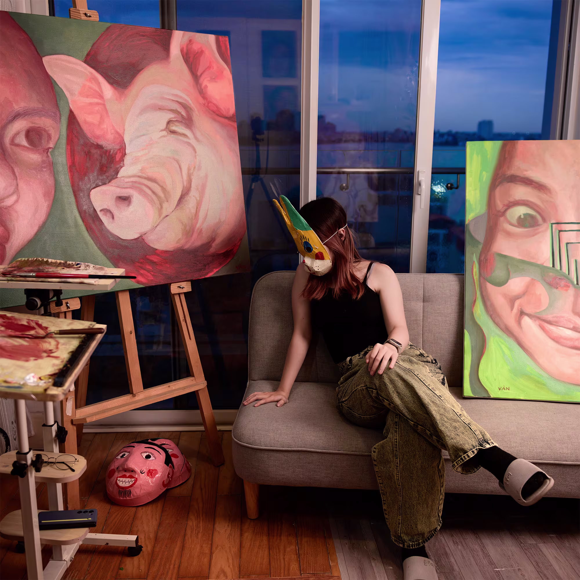 Khánh Vân sinh năm 1997, khát khao nghệ thuật đã được ươm mầm khi nữ hoạ sĩ còn đi học tại trường phổ thông chuyên Hà Nội - Amsterdam. Khi lên đại học, Khánh Vân mang theo giấc mơ hội hoạ sang Mỹ. Trải qua 4 năm du học và tốt nghiệp ngành Hội hoạ và Lịch sử nghệ thuật ở đất người, Vân cảm nhận rõ nỗi cô độc ở nơi xa lạ. Dù xung quanh luôn đông đúc nhưng Khánh Vân vẫn cảm thấy mình như đứng giữa đảo hoang không người.