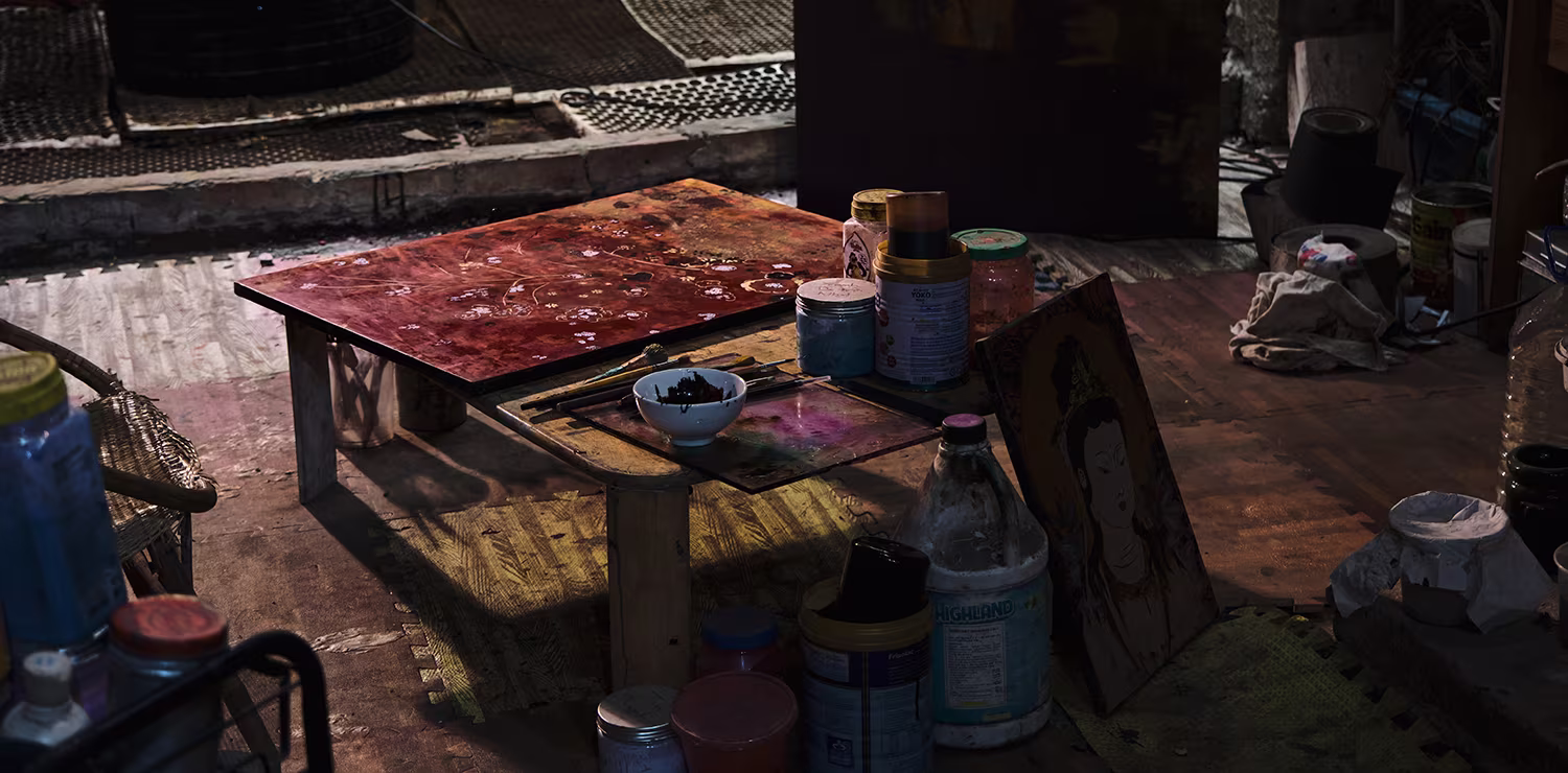 Trong quá trình bước chân vào cuộc đời đằng sau tranh vẽ của Nguyễn Đình Văn, chúng tôi có cơ duyên được gặp cặp đôi hoạ sĩ Nguyễn Văn Bảng - Nguyễn Thị Tiến. Chúng tôi không khỏi choáng ngợp trước di sản nghệ thuật và tri thức của hai giảng viên/nghệ sĩ đứng tuổi, và cũng thầm hiểu điều kiện “tạo tác” nên nhân vật của mình. Khiêm tốn với các danh xưng, bác Bảng nói mình cũng là một nghệ nhân, để tri ân tới làng nghề nơi mình sinh ra và lớn lên.
