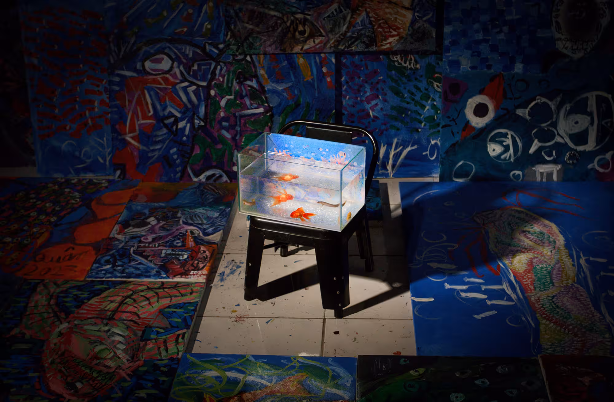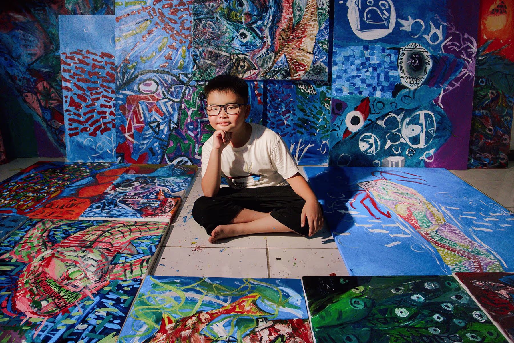 Tại đây, thế giới biển cả trong trí tưởng tượng của cậu bé 10 tuổi hiện ra một cách sống động và đầy bất ngờ. Người xem không chỉ thấy được vẻ đẹp hồn nhiên trong từng bức tranh, mà còn khám phá được chiều sâu tri thức và sự liên tưởng thú vị đằng sau đó. Triển lãm chính là không gian để Minh Quân tự tin giới thiệu một thế giới quan độc đáo của riêng em, nơi nghệ thuật và khoa học gặp gỡ.