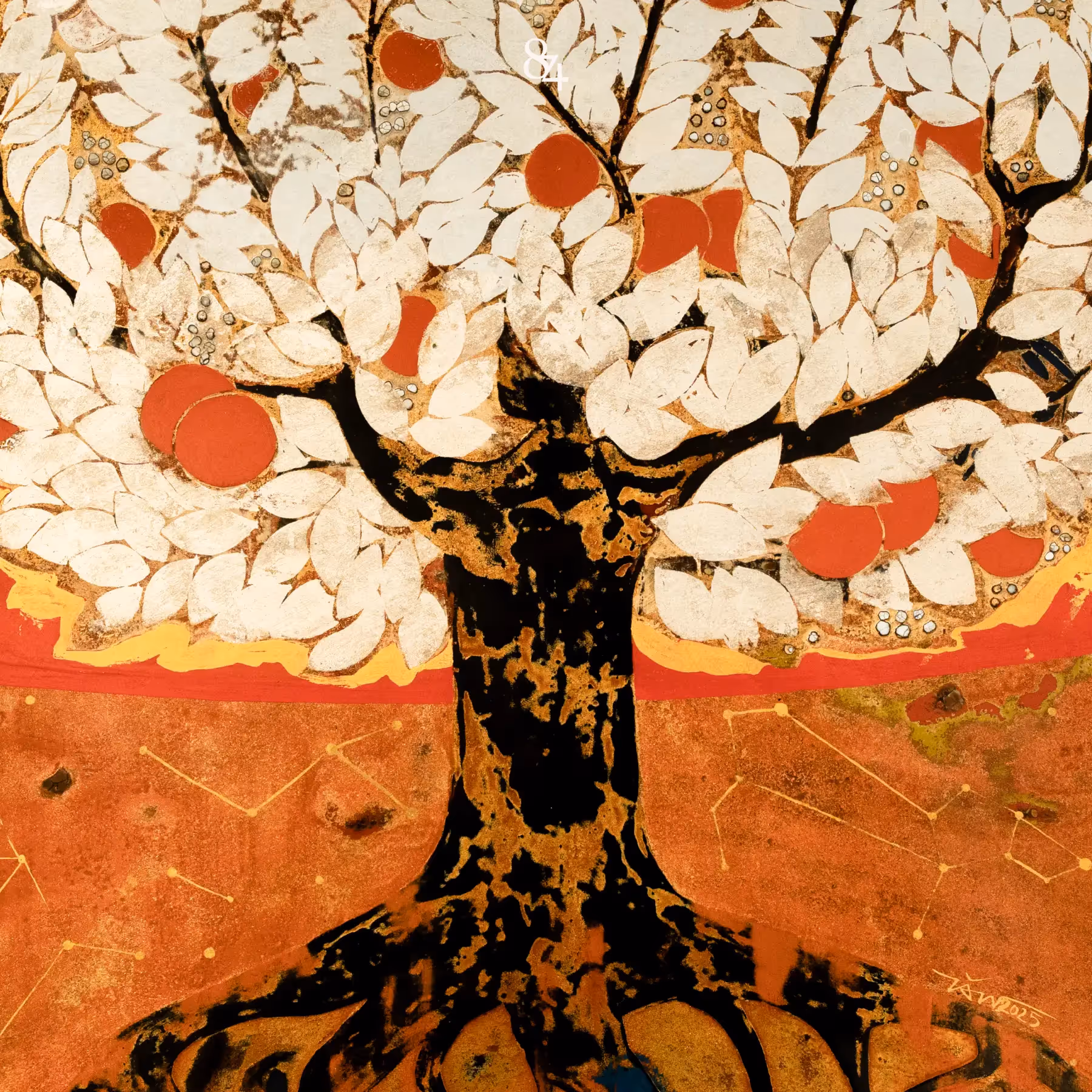 Tác phẩm lấy cảm hứng từ những quan sát của họa sĩ về thiên nhiên và bầu trời. Tác phẩm thể hiện góc nhìn về mối liên kết hài hòa giữa thiên nhiên và vũ trụ - nơi mọi sự sống sinh sôi, nảy nở và vận hành trong một vòng tuần hoàn bất tận. Trong vòng tuần hoàn ấy, con người cũng chỉ là một phần của dòng chảy vĩnh hằng, vừa chịu ảnh hưởng, vừa góp phần duy trì sự cân bằng của vũ trụ.